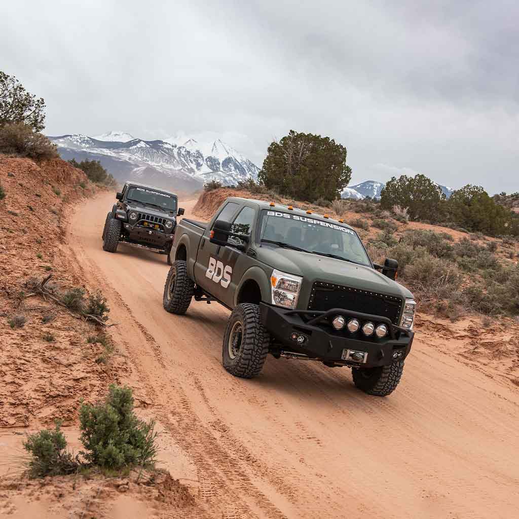 In the rear, BDS offers the option of either taller lift blocks with an integrated bump stop wing to use with your factory springs or upgrade to the replacement GlideRide rear leaf springs with integrated overload leaf for great all around capabilty and limit any potential axle wrap. The block kit integraetes a u-bolt flip to maximize ground clearance and includes new u-bolts and spring plate. Rounding out these kits is a a rear brake line bracket and matching rear NX2 or FOX 2.0 gas shocks. As with all kits these include all hardware and step-by-step instructions to complete the install. As with all BDS lift kits, this kit is backed by Factory Protection Plus for peace of mind wherever your adventures may take you. Factory Protection Plus includes BDS's exclusive No Fine Print Warranty along with a 5-year, 60,000-mile drivetrain warranty.