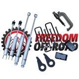 Forged lift torsion keys adjustable for 1-3" of front lift Carbon steel 3" rear lift blocks with extended U-bolts High pressure nitrogen charged shocksForged torsion key installation tool