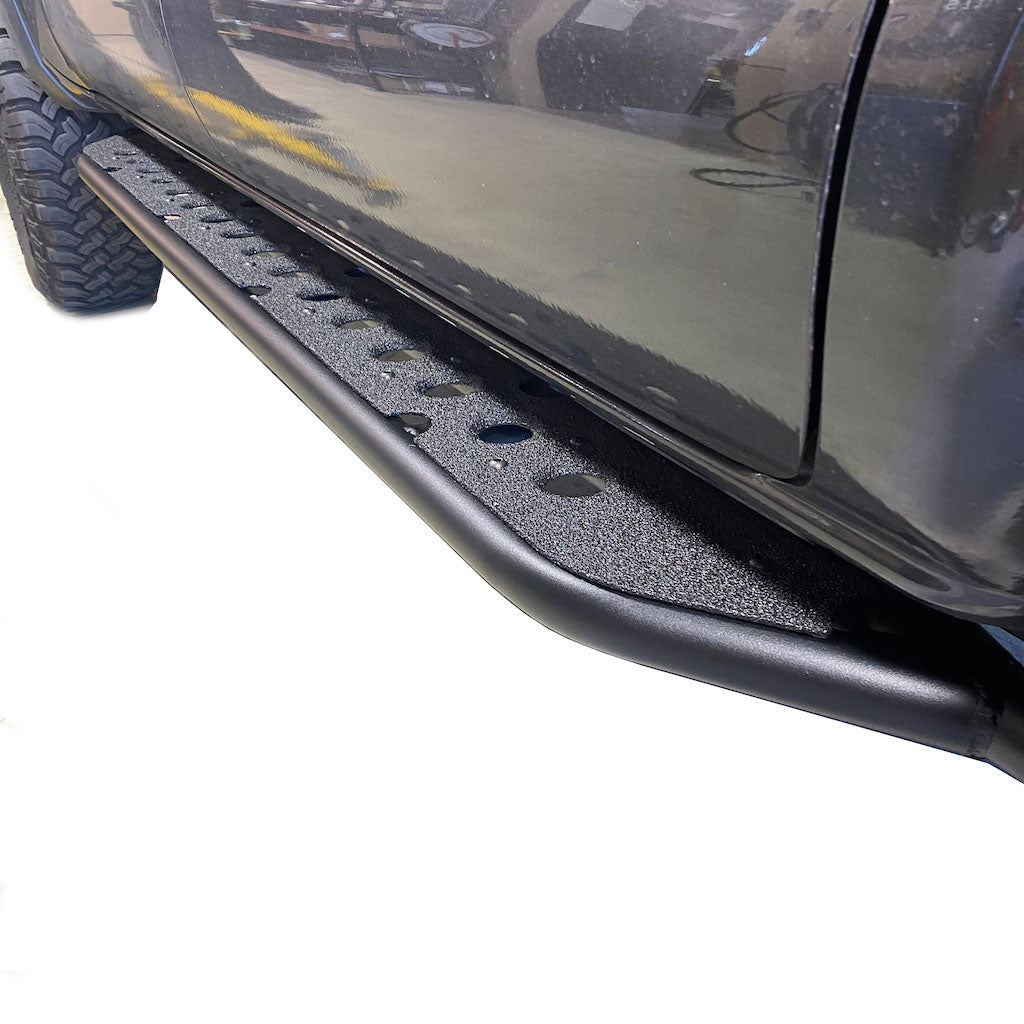 Choose between kick-out or no-kick-out, from RAW, Powder Coat, and Bedliner finishes. You can even mix and match the slider and filler plate finishes! More options than any other supplier on the market! Crafted from American 1.75" DOM tubing, we don't up-charge you for better material or for features like kick-outs.