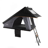 Aluminum hard shell wedge roof top tent with lifting brackets and extendable ladder. Quick setup and takedown expanding hinge provides additional headroom, memory foam mattress, large viewing windows and entry.